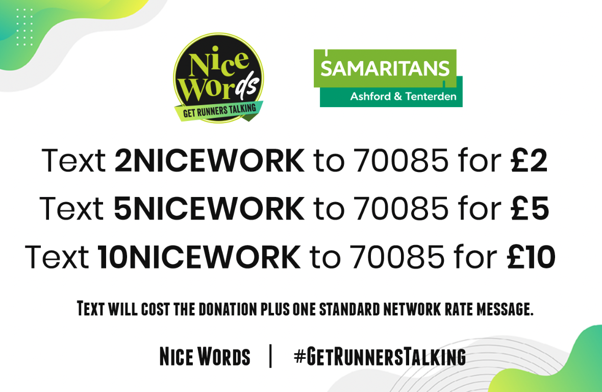 During this week's campaign, you can text either 2, 5 or 10 followed by NICEWORK to donate to the Samaritans. Text's cost the donation plus one standard network rate.